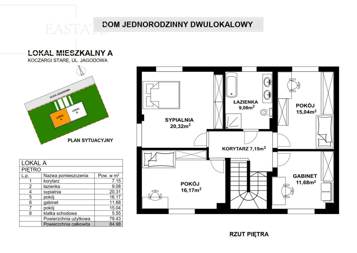 - Poddasze nieużytkowe 63,11 m² z możliwością indywidualnego zagospodarowania.